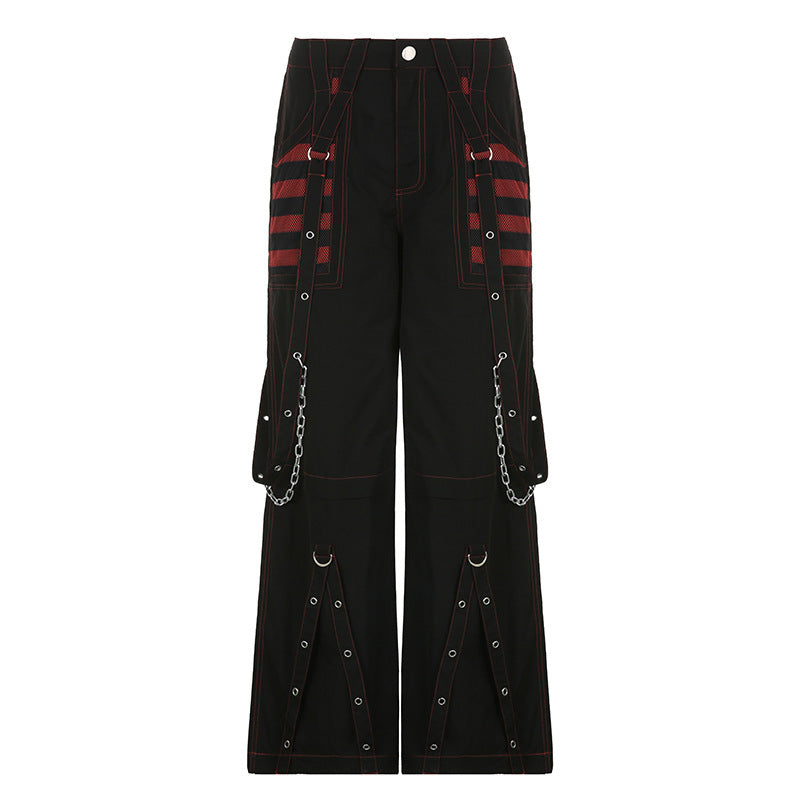 New Women's Loose Contrast Stripe Mesh Panel Pants